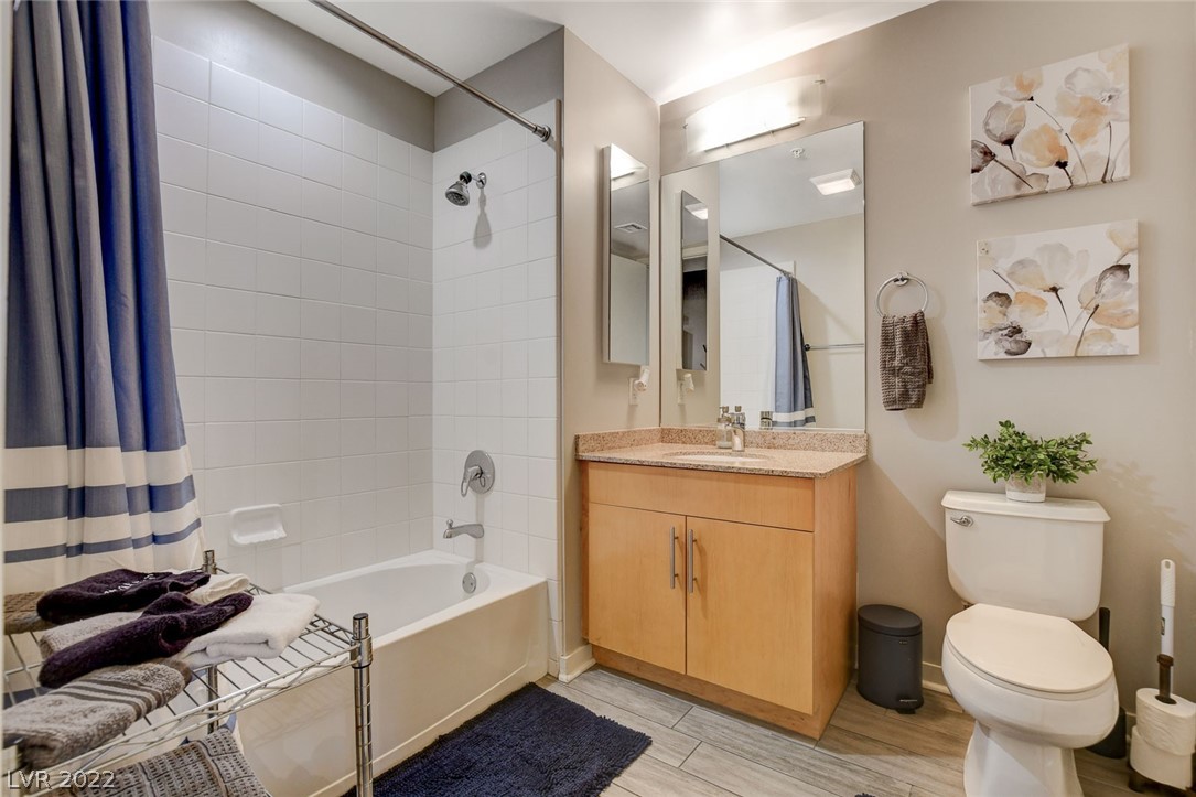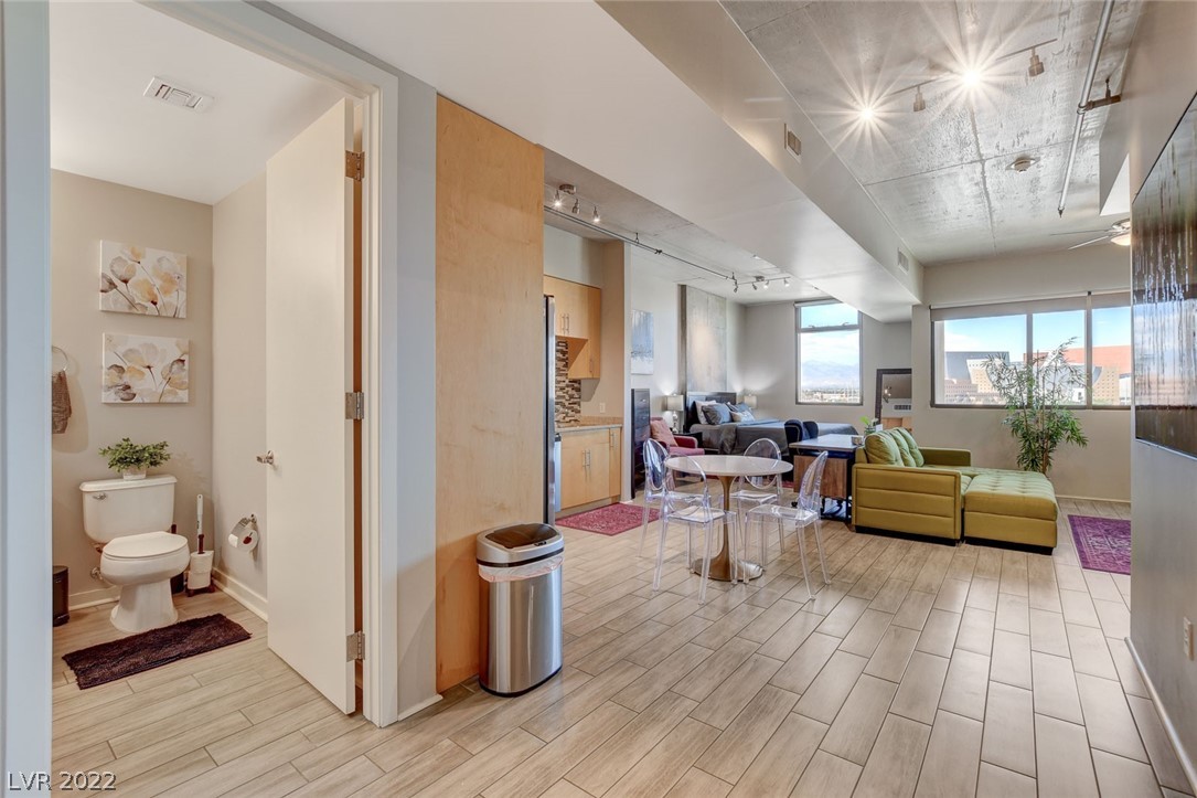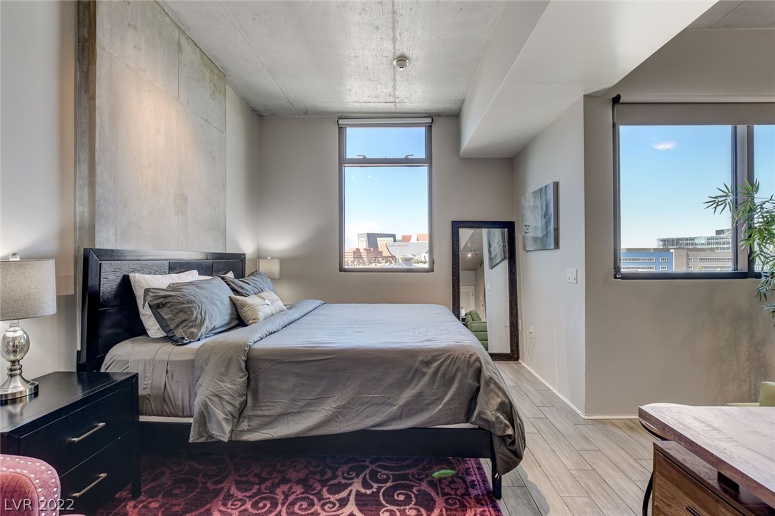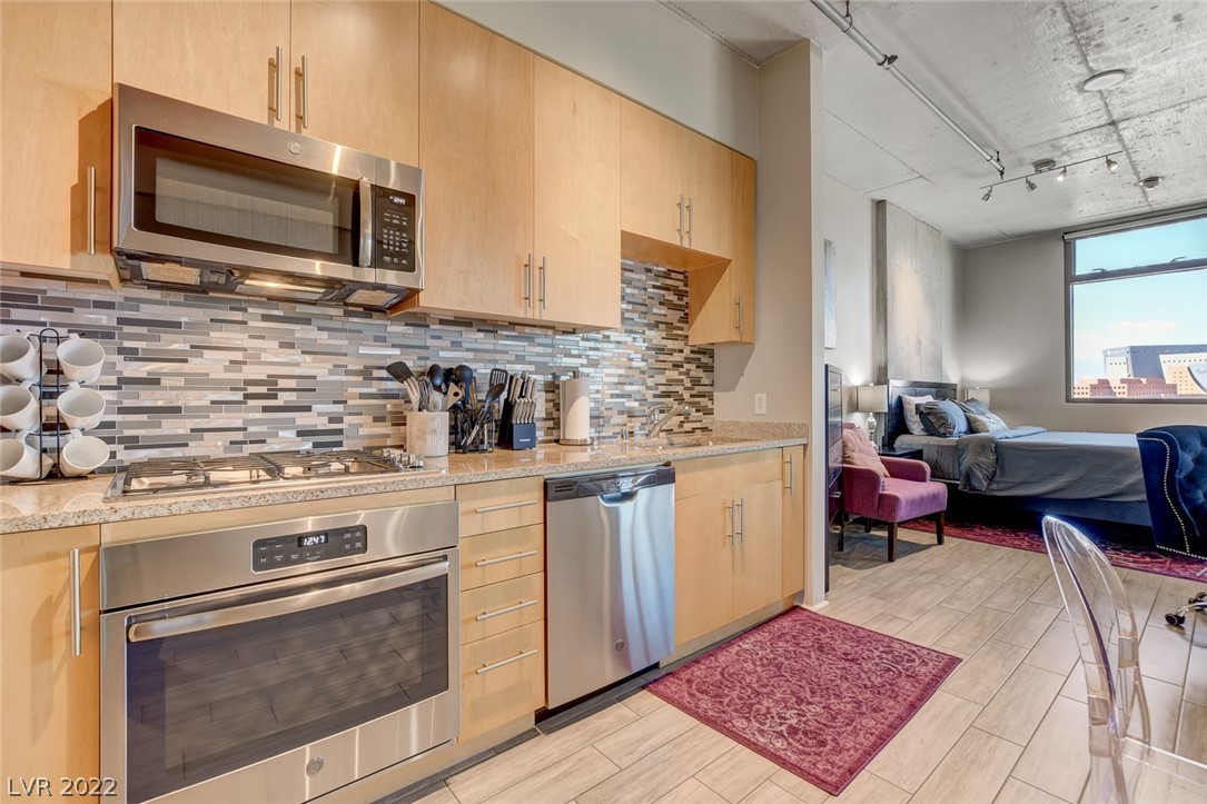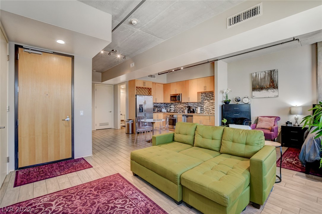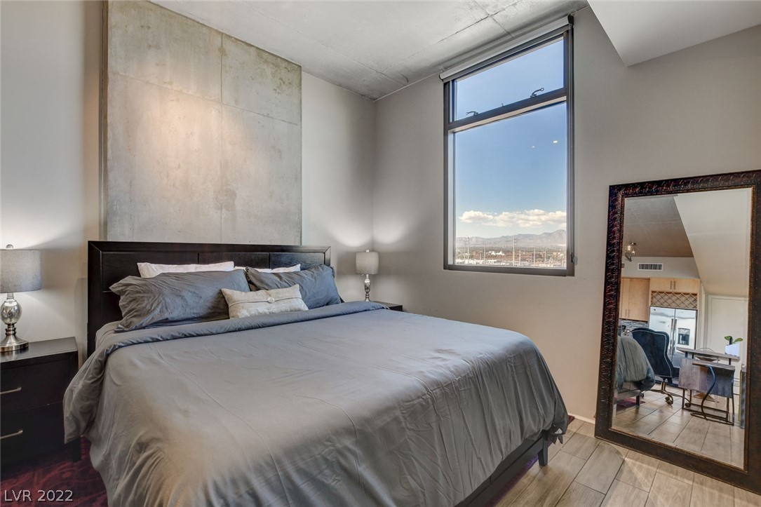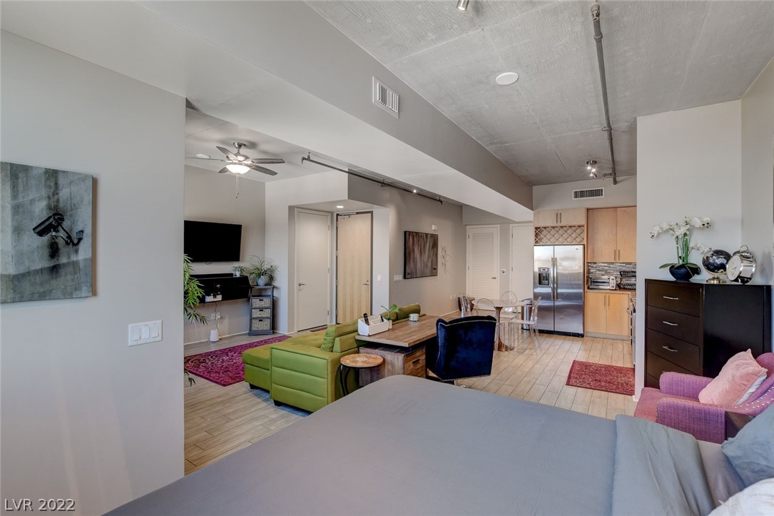 Amazing investment opportunity! Welcome to your home away from home! Conveniently located in the heart of Downtown, walking distance to Fremont Street, restaurants and Art District. Juhl promenade offers retail and restaurants. This smart efficiency studio has everything you need & more. Offered fully furnished. Features a california king bed, the large sofa can easily accommodate an extra guest. Kitchen offers granite countertops, stainless steel appliances and all of the tools u need for cooking homemade meals as desired. Wood-like tile flooring throughout. Watch your favorite movies and download your favorite apps on the smart TV. Community offers first class amenities, resort style pool with cabanas with outdoor kitchen, 2-story fitness center, pet walk, outdoor movie theater, stunning vino deck with views of the Las Vegas Strip, concierge, and much more!
